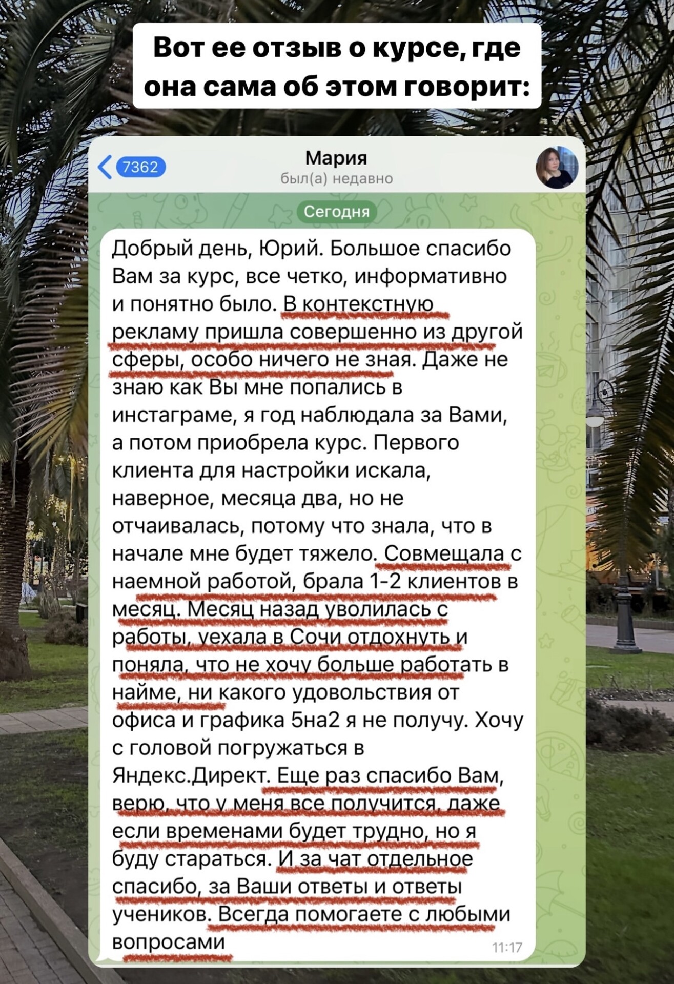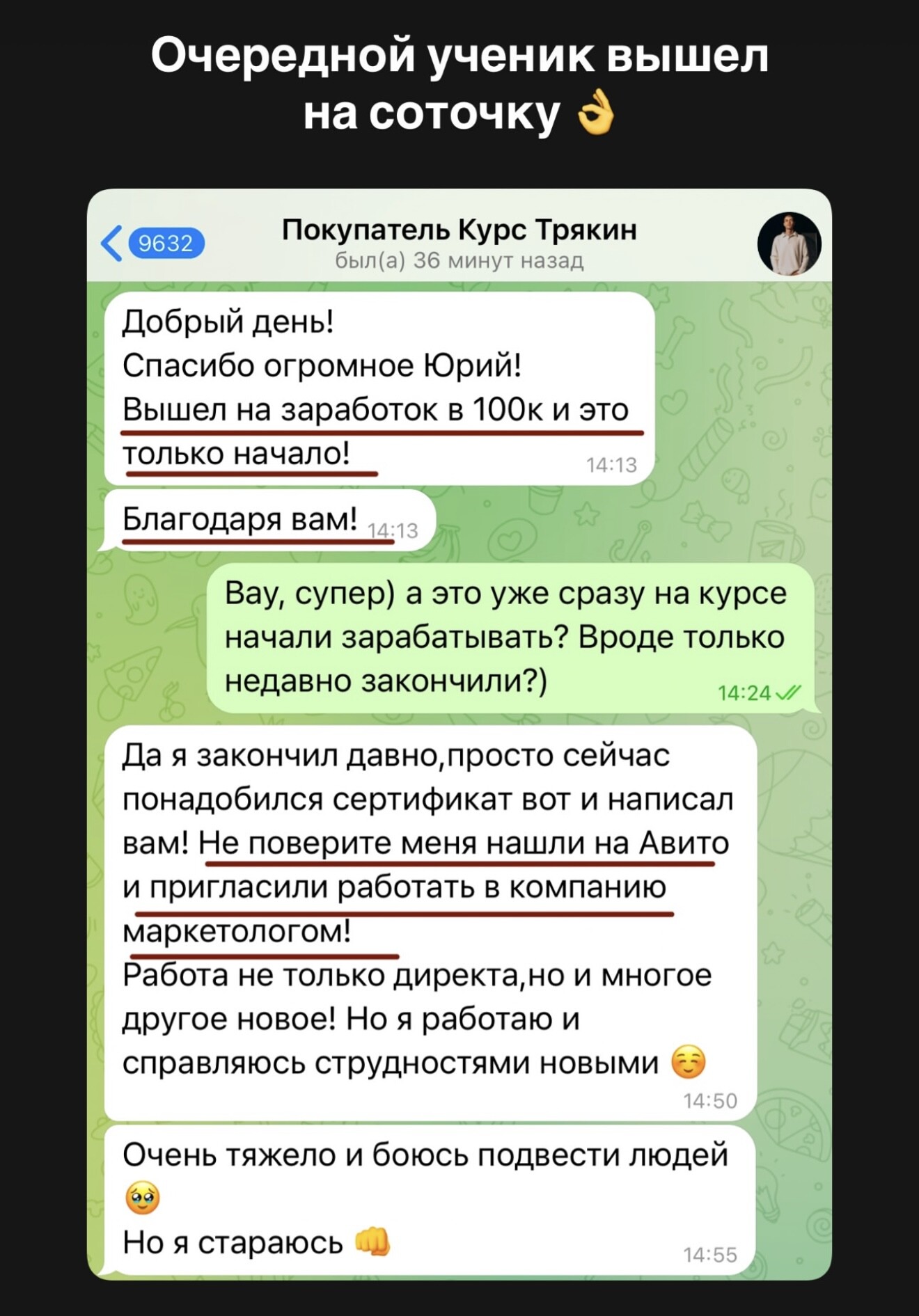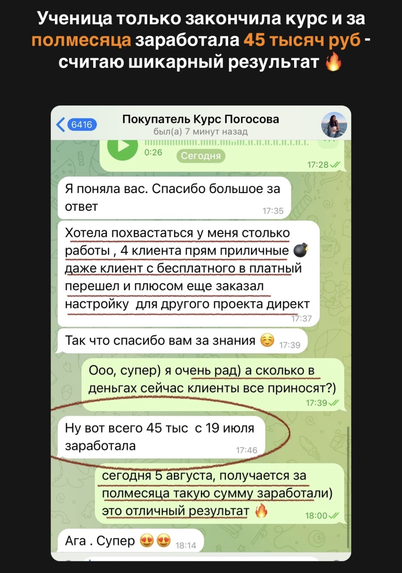 Сразу скажу, что прохождение курса не гарантирует какого-либо дохода или устройства на работу. На курсе вы научитесь именно настройке качественной рекламы в Яндекс Директ и получите информацию, как искать клиентов, но все конкретные результаты от деятельности и качество освоения навыков зависят от личных усилий, способностей конкретного ученика и рыночных условий.