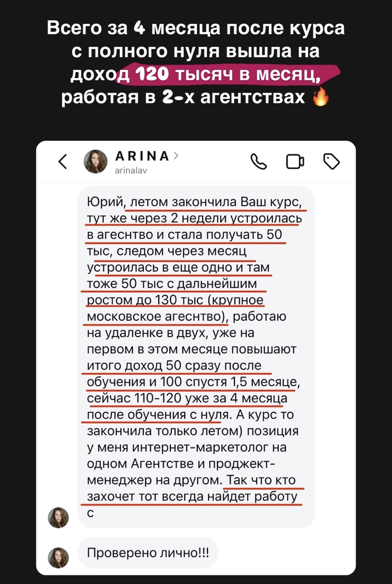 Но нужно понимать, что результаты обучения индивидуальны и зависят от приложенных усилий, личных способностей и применения полученных знаний на практике, а также от рыночной ситуации.