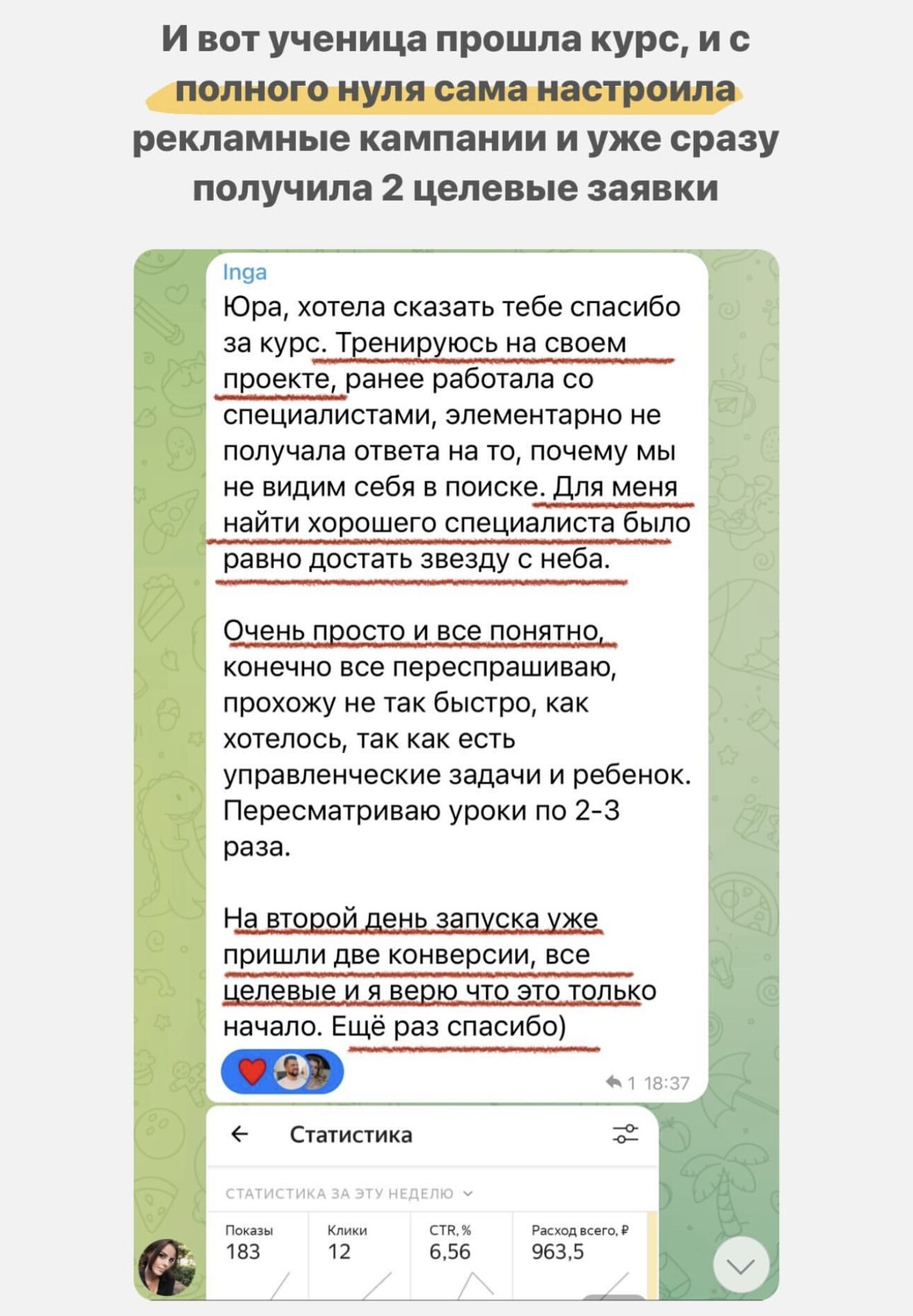Я приглашаю вас на свой курс, где я делюсь своим 11-летним опытом и учу не просто нажимать «кнопки» в интерфейсе, а целостному навыку настройки эффективной рекламы. Моя цель - передать вам знания и научить навыкам, с помощью которых вы сможете работать в этой востребованной профессии, которая предоставляет большую свободу в выборе проектов и организации своей жизни.