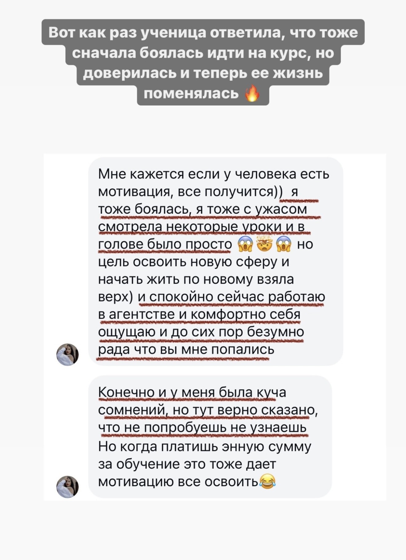 У меня успешно учатся люди без какого-либо опыта в digital - например, молодые мамы в декрете, студенты, люди из совершенно других профессий, которые после курса уверенно начинают свой путь в новой деятельности и успешно применяют знания на практике.