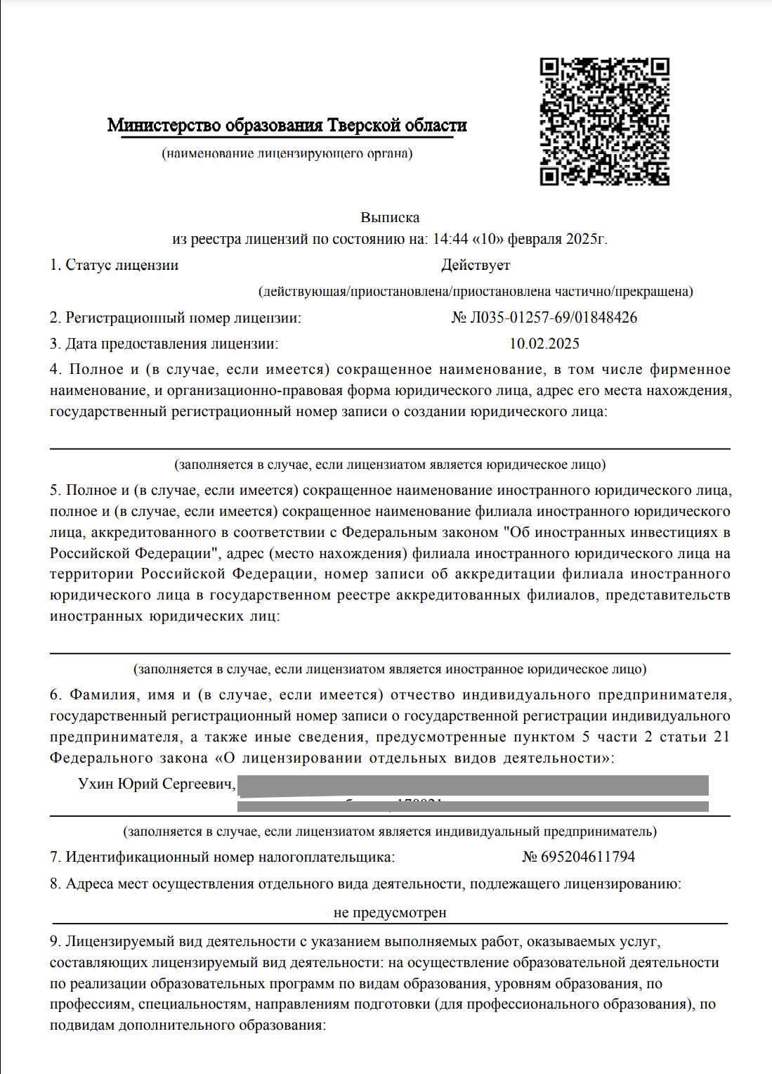 Лицензия - ваша гарантия того, что вы получаете структурированное качественное дополнительное образование, а не просто информацию из интернета.