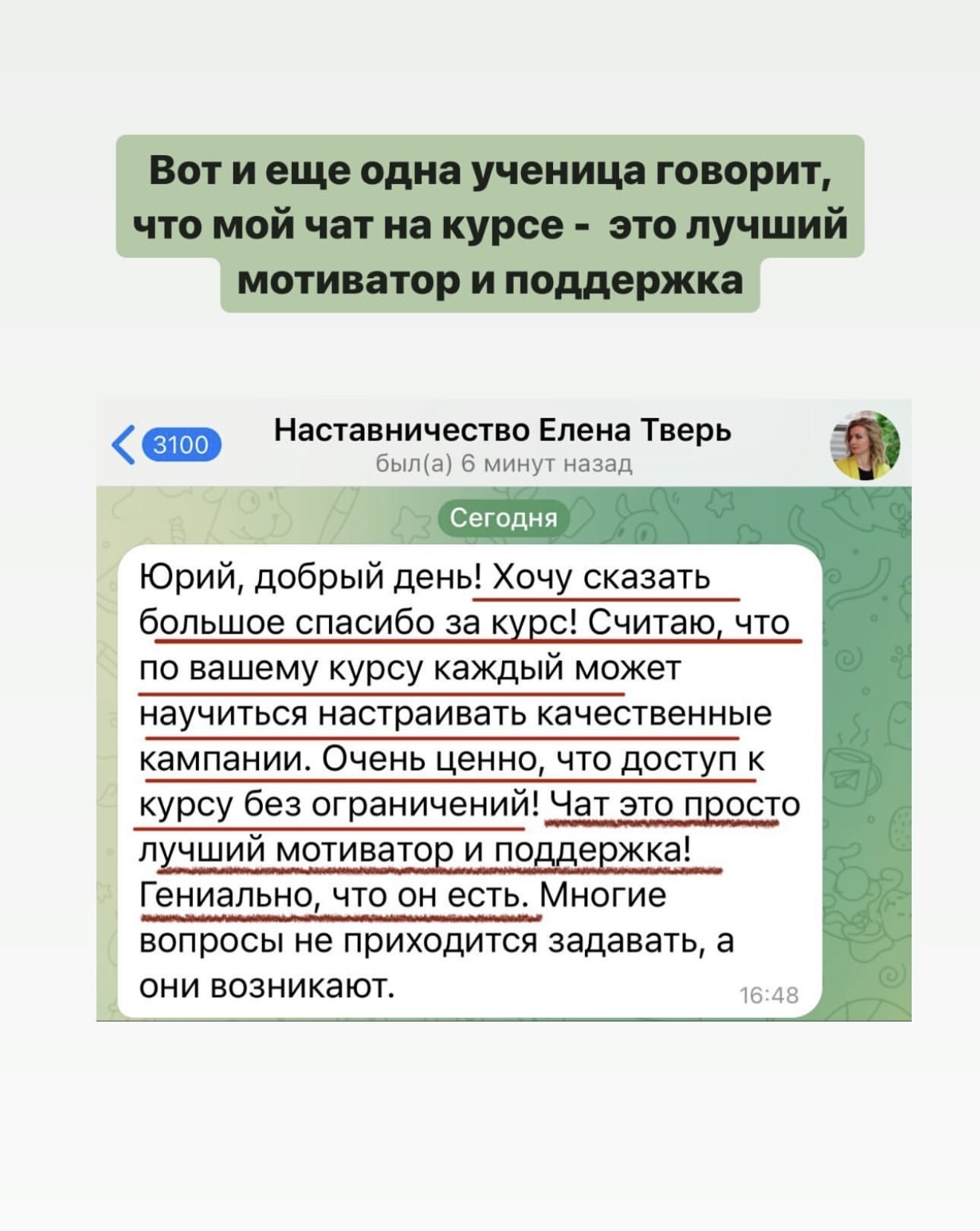 Проверка хода работы над проектом в рекламном кабинете от автора курса (нахожусь лично в вашем рекламном кабинете и контролирую с вами работу над проектом)